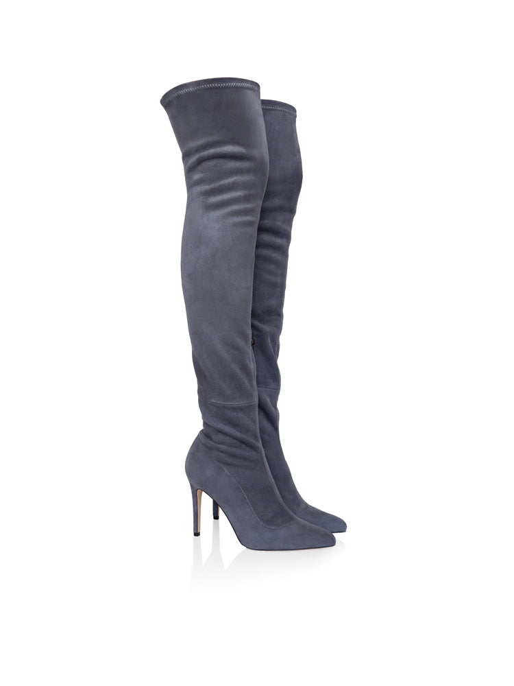 THE STATEMENT CD28SH Cizme elastice peste genunchi, piele intoarsa stretch, toc cui inalt, gri