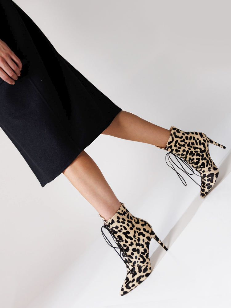 SHON BD39 Bocanci scurti cu siret, piele