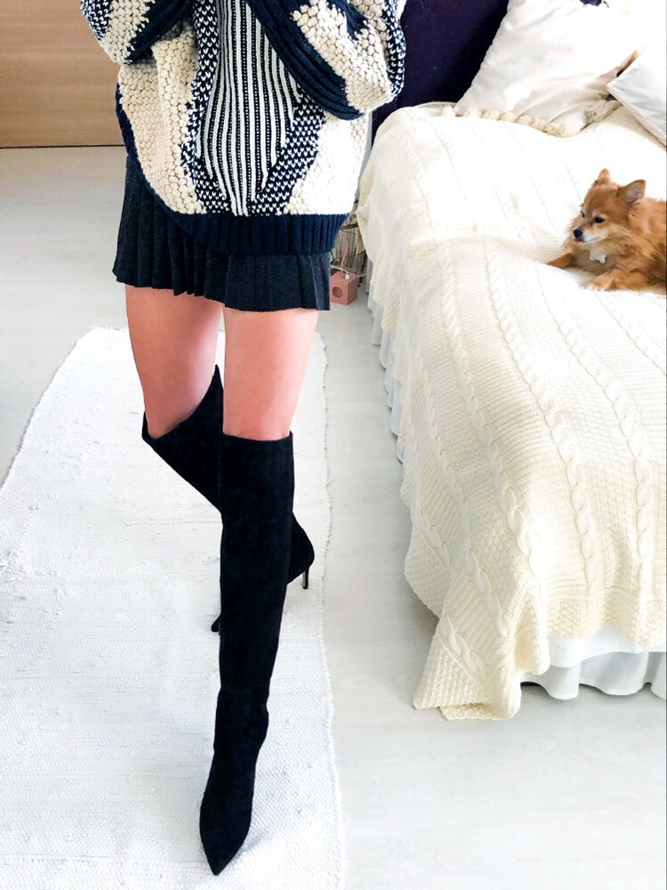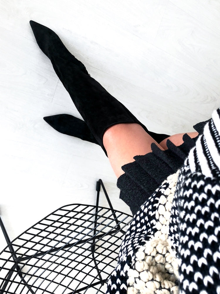 LIVIA CD60 Cizme largi sub genunchi, piele intoarsa, toc cui