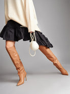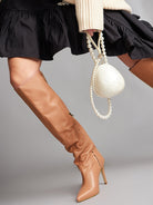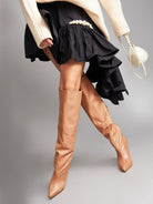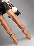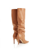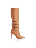 OLENA CD65 Cizme fronsate sub genunchi, piele, toc cui inalt