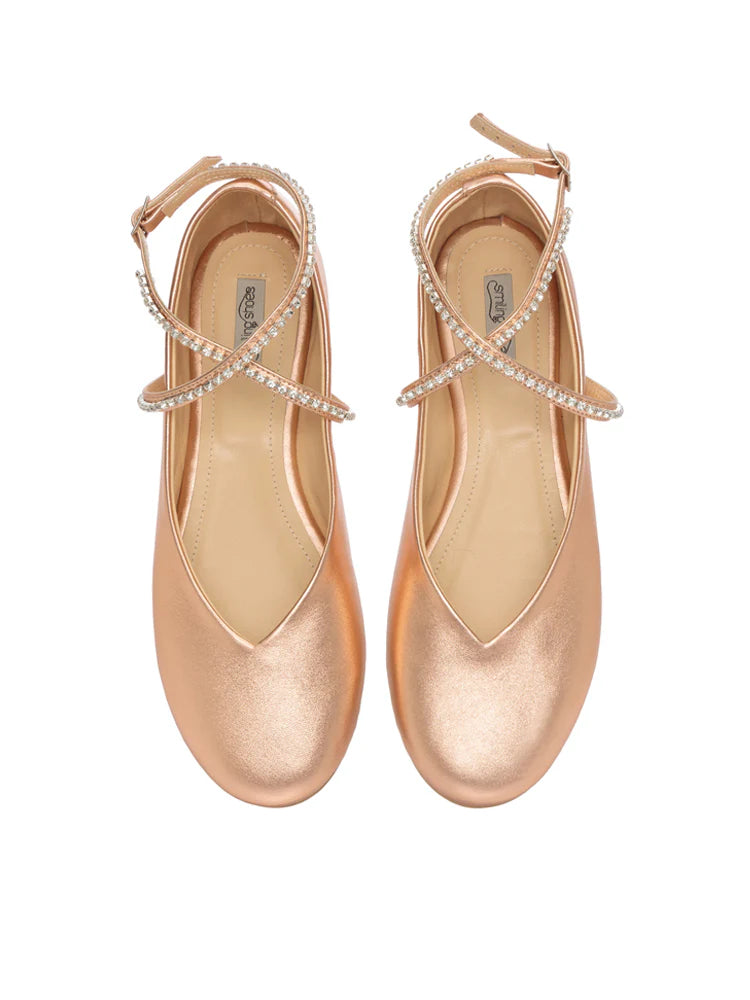 Balerini clasici rotunzi cu barete in X si cristale aplicate.