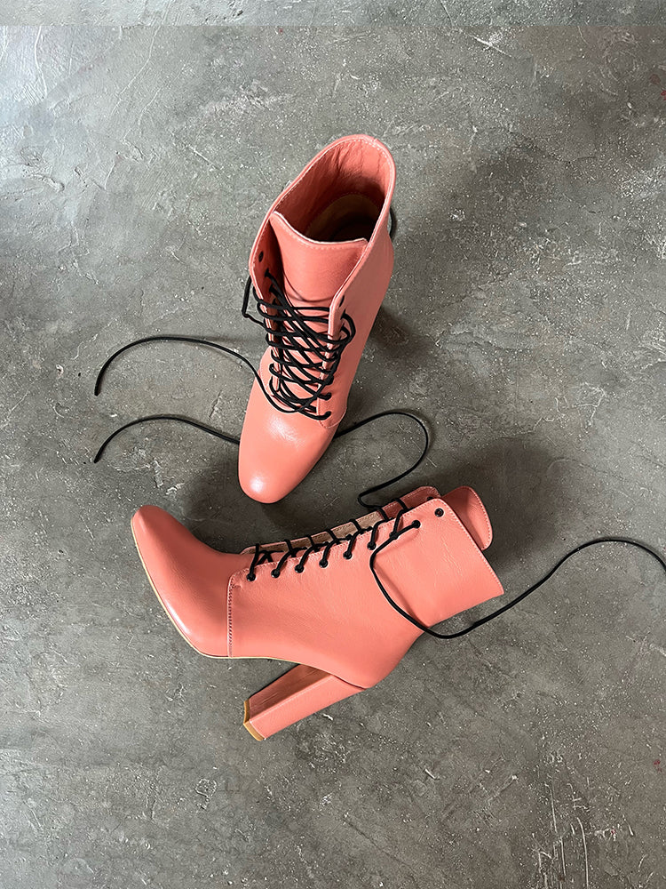 ST309 - 38 Botine cu siret, piele, toc gros inalt, somon,