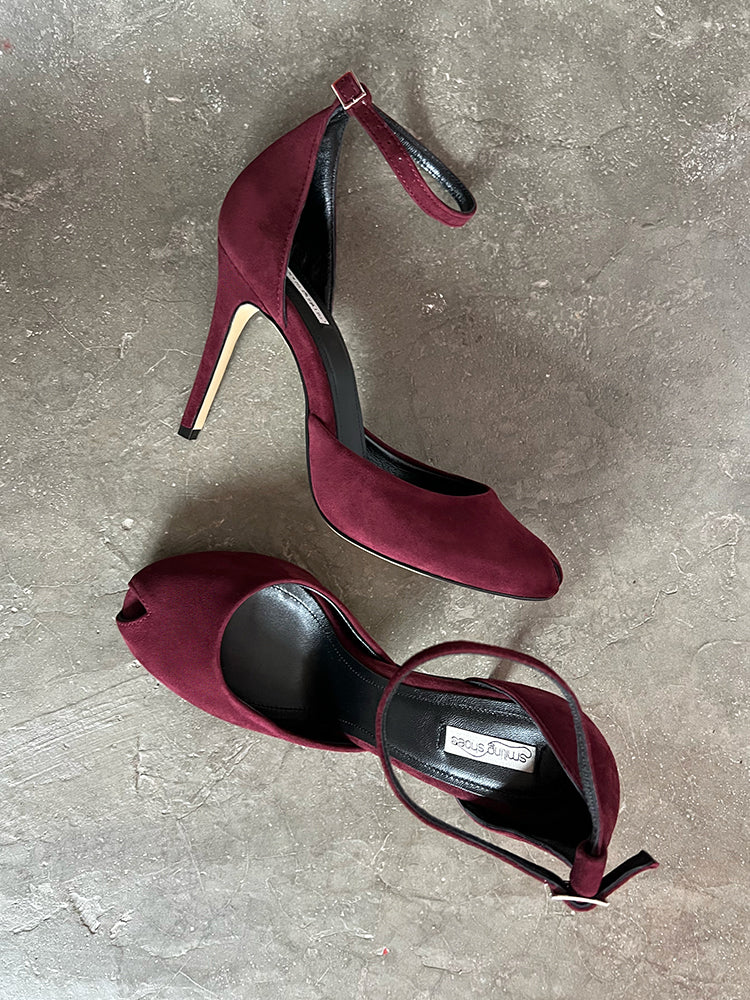 ST311 - 39 Pantofi piele intoarsa, toc cui inalt, visiniu velur