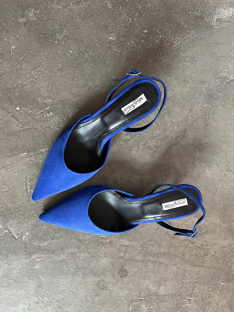 ST312 - 38 Pantofi stiletto piele intoarsa, toc cui mic, albastru intens