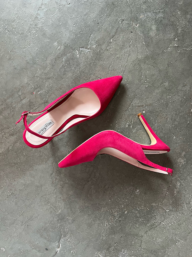 ST310 - 39 Pantofi stiletto piele intoarsa, toc cui, rosu velur