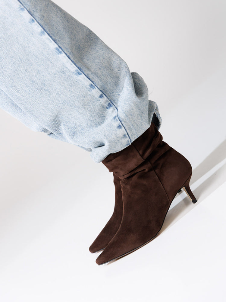 STELLA CD72 Cizme scurte drepte, piele intoarsa, toc cui mic