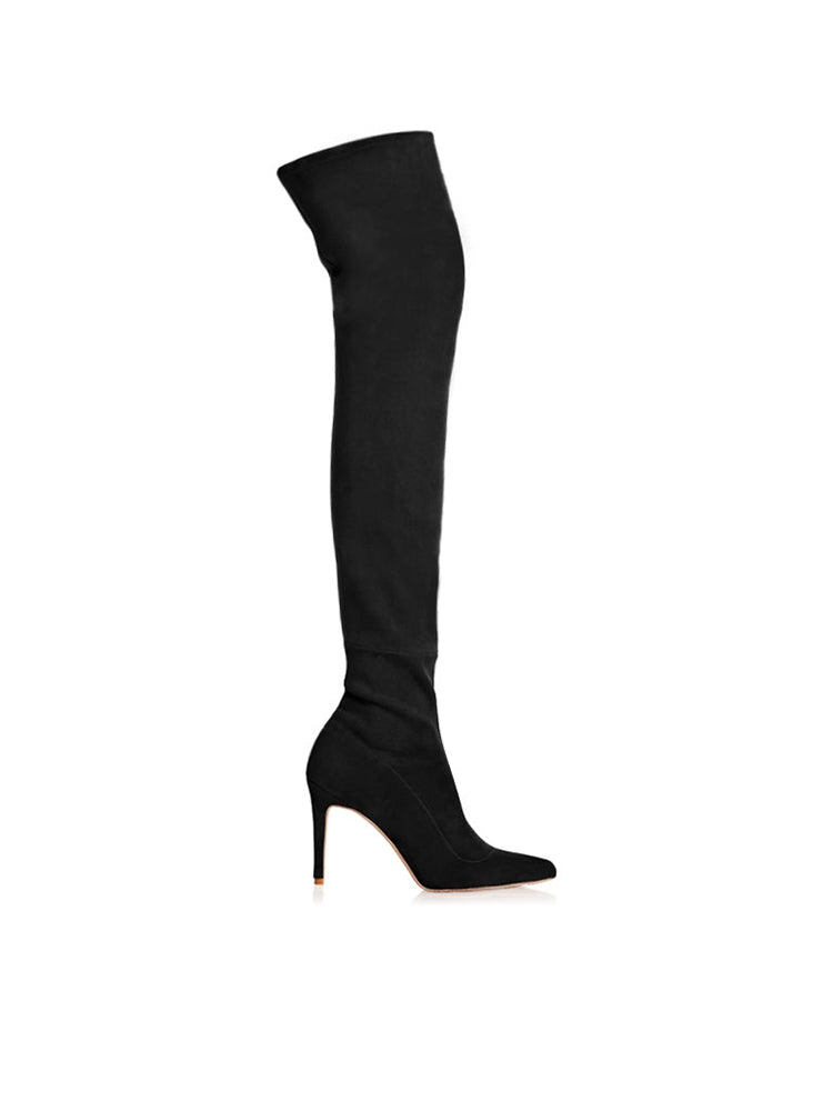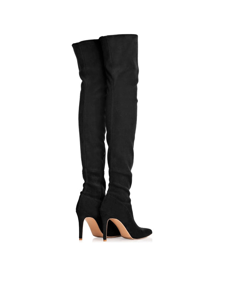 THE ICON CD28SH Cizme elastice peste genunchi, piele intoarsa stretch, toc cui inalt, negre