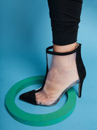 Picture: black suede, white mesh; heel height 9cm.
