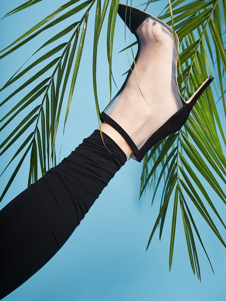Mesh ankle boots with spike heel.