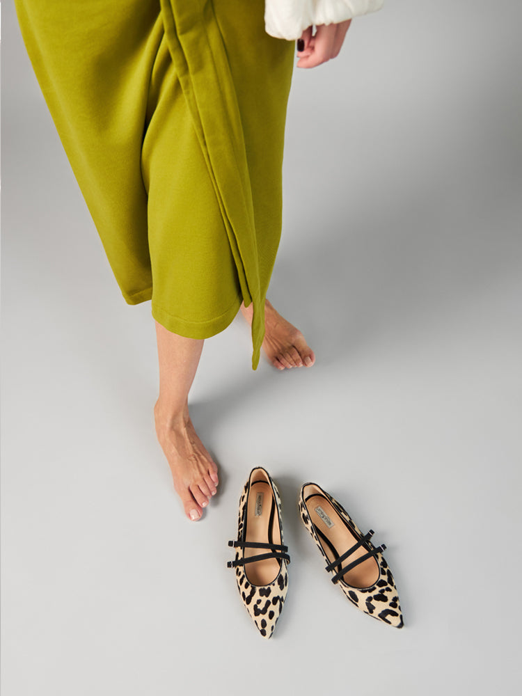 Classic ballerinas with pointed toe and decorative straps.