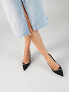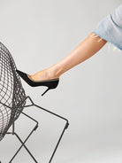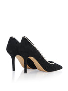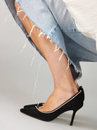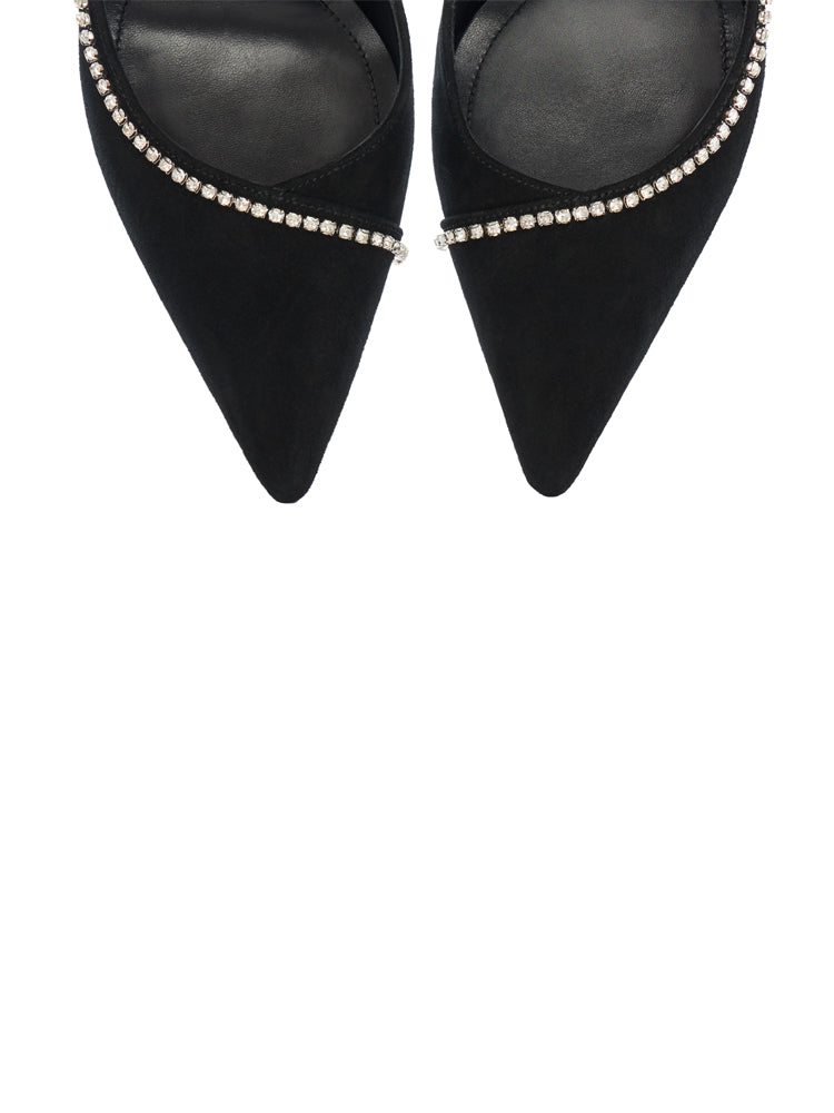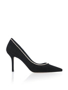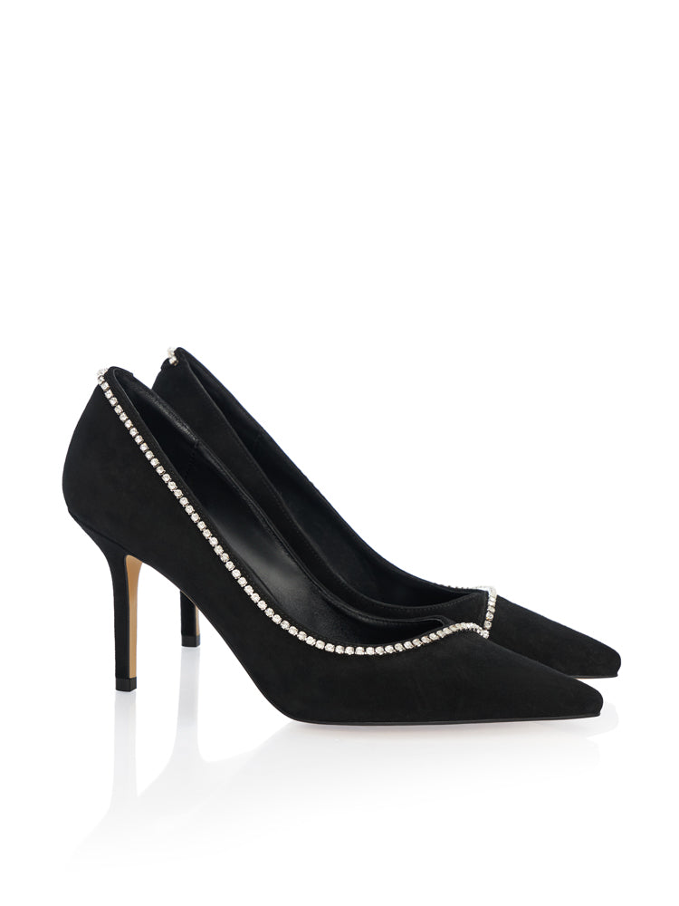 Classic stiletto pumps with V cut and crystals, spike heel.