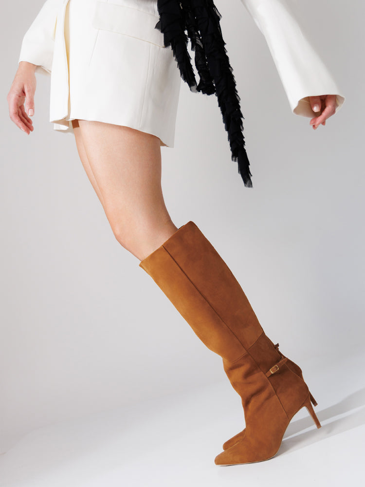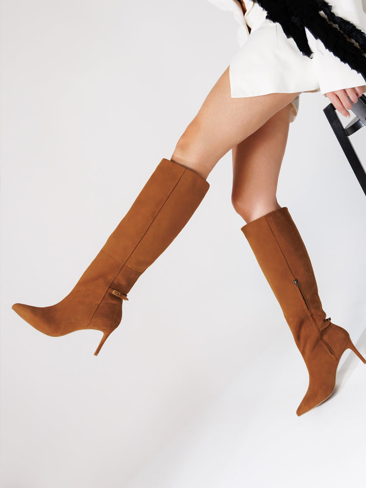 KAIA CD73ST Cizme drepte sub genunchi, piele, toc cui, maron